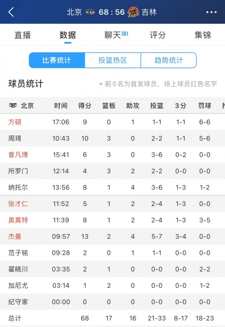 3月19日訊 CBA常規(guī)賽,北京半場68-56領先吉林。上半場比賽,北京進攻端多點開花,出戰(zhàn)11人皆有得分入賬,除兩人上雙(杰曼13分、周琦10分)外,其他人都不同程度有得分。 標簽: 籃球 CBA 中國籃球 北京 周琦