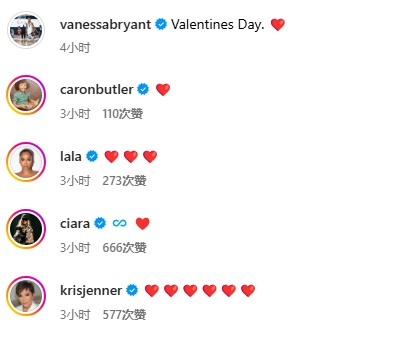 02月15日訊 瓦妮莎今日更新Instagram動態(tài),曬出自己與科比的昔日合影,并配文:“情人節(jié)??。”