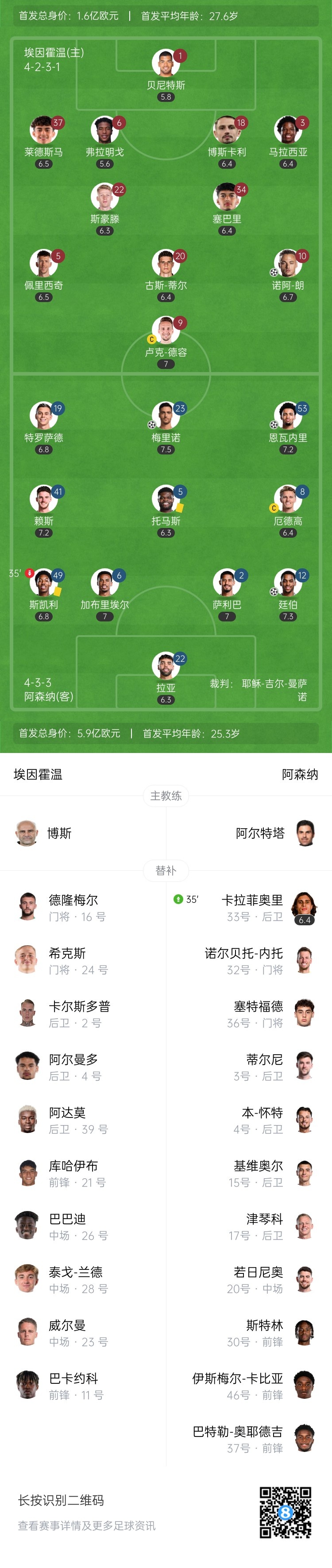 3月5日訊 北京時間4:00,歐冠1/8決賽首回合阿森納客場挑戰(zhàn)埃因霍溫,比賽在飛利浦大球場打響!上半場,廷伯頭球破門首開記錄,恩瓦內(nèi)里抽射建功;斯凱利染黃;隨后梅里諾再下一城!托馬斯送點,諾阿-朗點射扳回一球。半場結(jié)束,阿森納暫時3-1領(lǐng)先埃因霍溫。